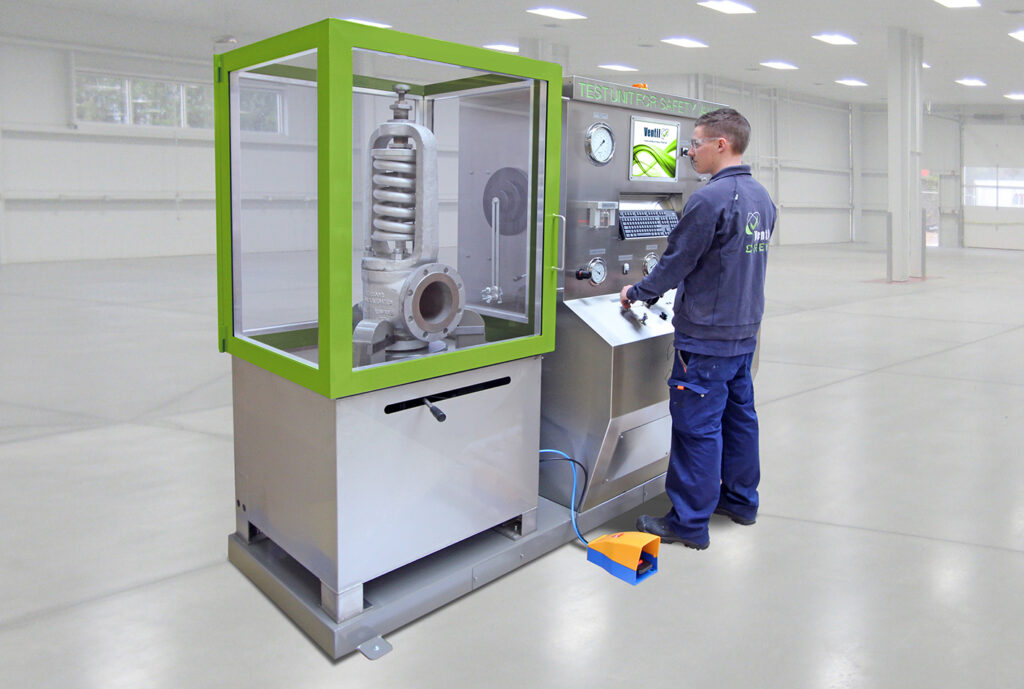 The VC-SRV is an universal and versatile test bench for Pressure Relief-/Safety Valves, designed for precise, safe and efficient testing of valves from 1/2″ to 16″. It handles pressures up to 300 bar (4,350 psi) with gas or liquid media, fully compliant with API 527 standards.