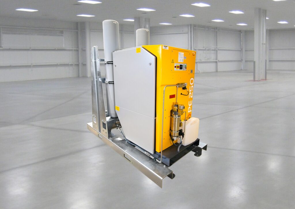 This electrical driven compressor supplies compressed air up to 300 bar / 4,350 psi and automatically pressurizes two storage cylinders with a total capacity of 100 liter.